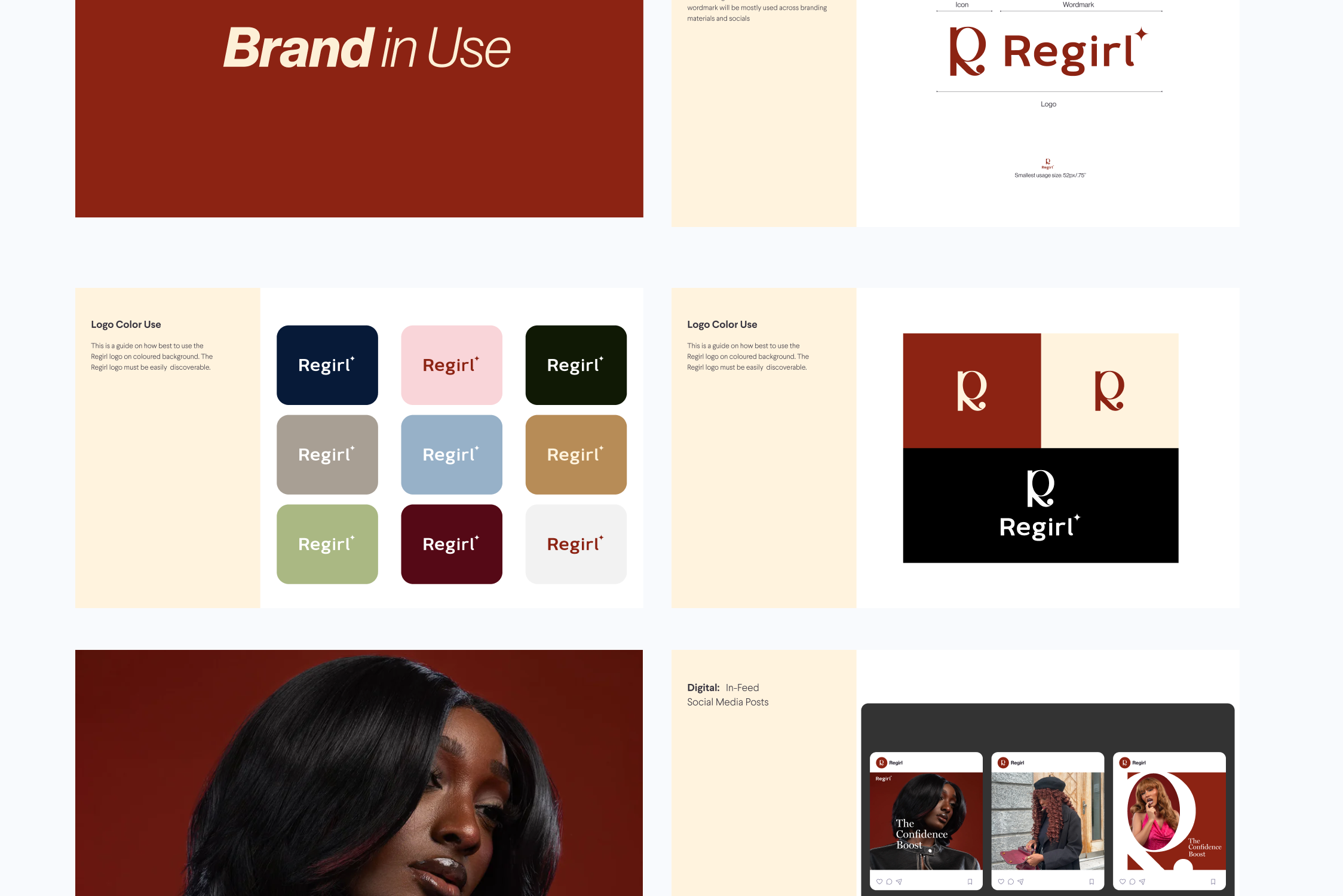 I collaborated with Regirl to redefine their brand for a new era—where ethics, innovation, and effortless style intersect. The refreshed identity captures their move toward technology-powered hair solutions and embodies the bold, versatile spirit of their community.